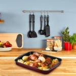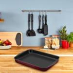 As formas e assadeiras são itens essenciais em todas as cozinhas e a escolha dos produtos Rochedo é um diferencial para suas refeições ficarem melhores e mais saborosas. A nova Assadeira Retangular 37,3x25 ,4cm Rochedo Dura+ revestida, agora na cor vermelha, apresenta: