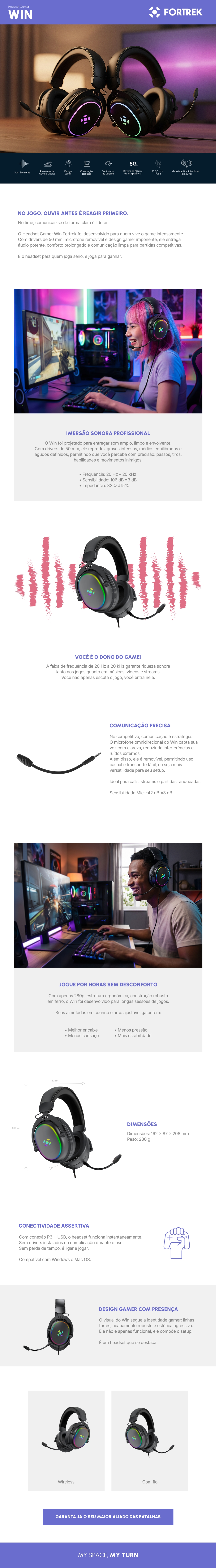 Se você procura um headset gamer com microfone removível, com drivers de 50 mm potentes e confortável para jogos competitivos<(>,<)> streams ou uso diário, o Headset Gamer Win Fortrek é a escolha ideal para elevar sua performance e completar seu setup.
