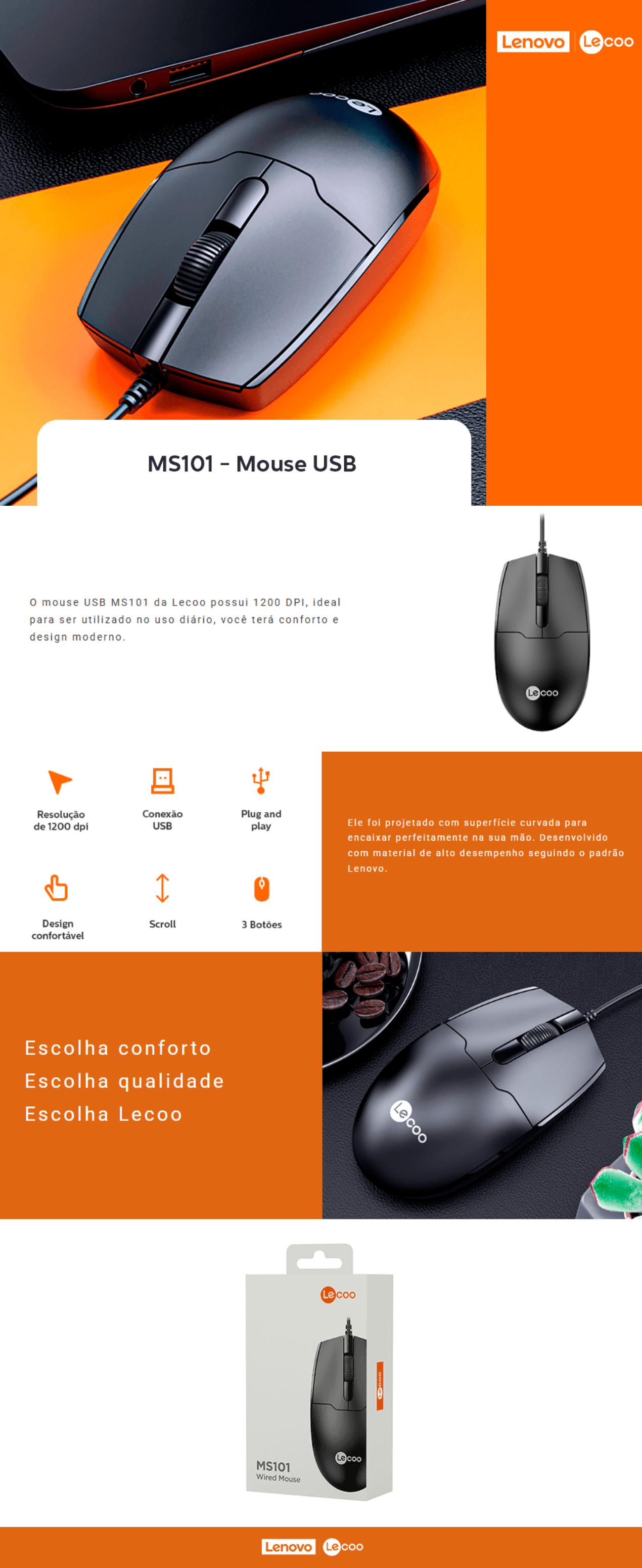 Compatível com diversos sistemas operacionais, o mouse óptico com fio Lecco é do tipo plug and play, ou seja, basta conectar para começar a usar sem complicação. Uma ótima opção para quem busca um mouse simples, durável e preciso para computador ou notebook.